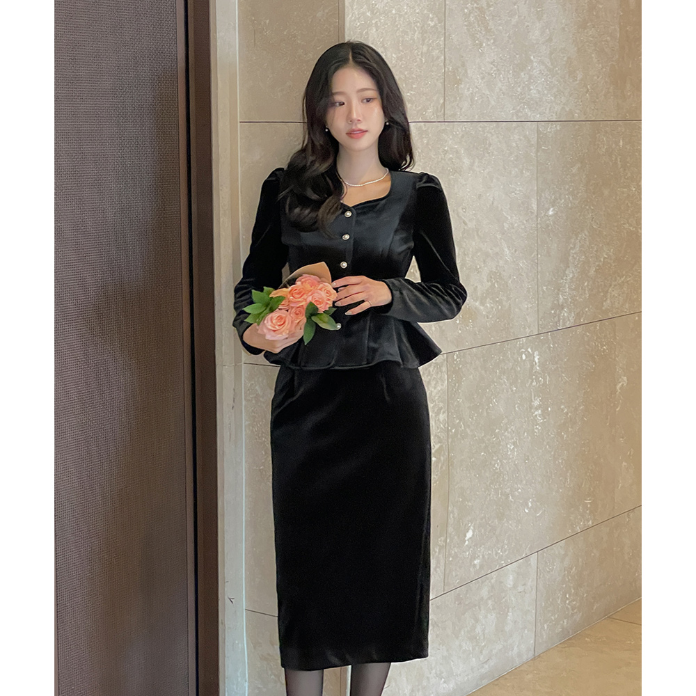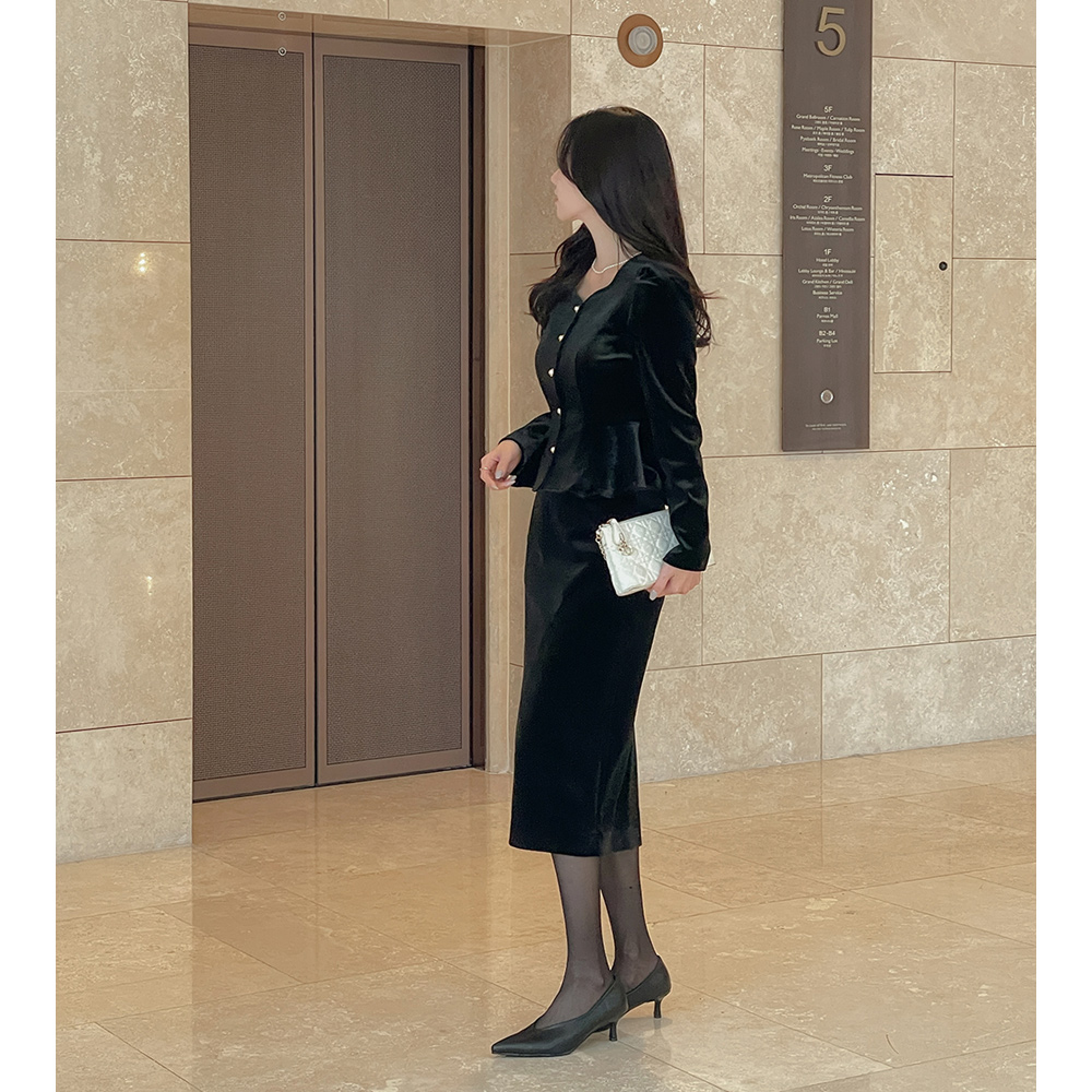 크리스 丝绒 荷叶边 Set-up 罩衫