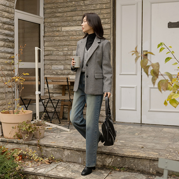 复古 水洗 拉绒 内衬 여유핏 牛仔色 裤子