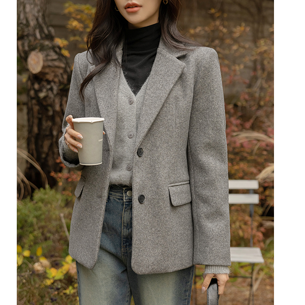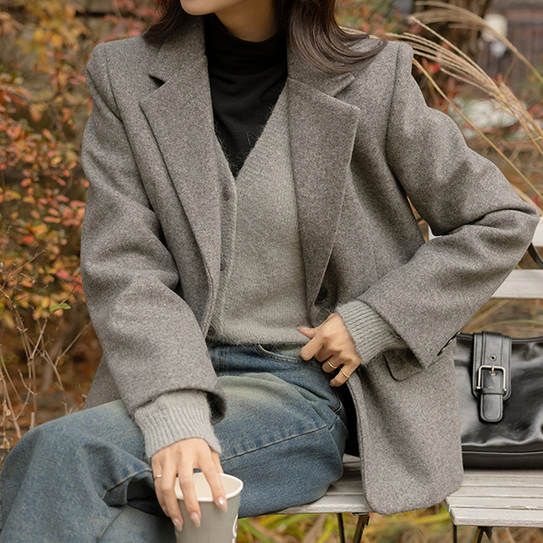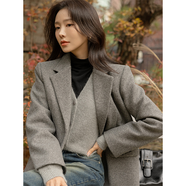 羊毛&安哥拉 柔软的 V领 针织衫 开衫