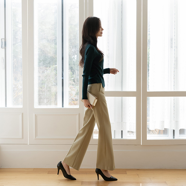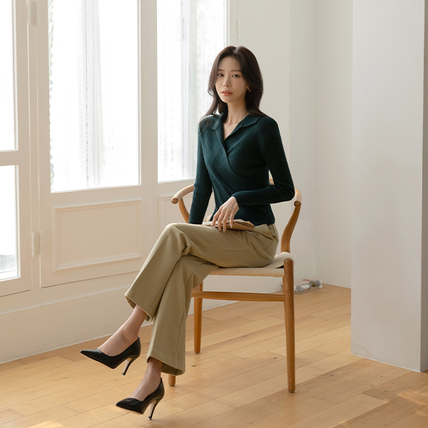 苗条 裹身风格 翻领 条绒 针织衫