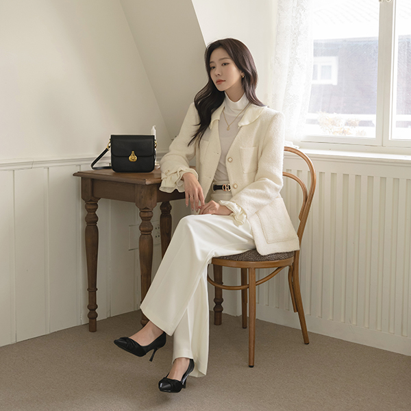 双重 荷叶边领 羊毛 短上衣 结子花式 夹克