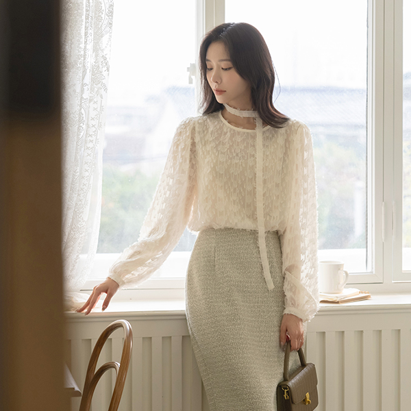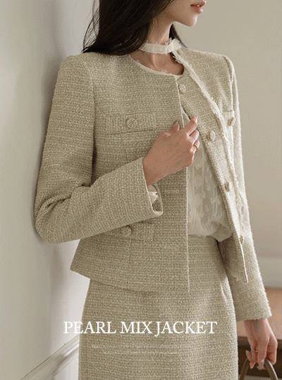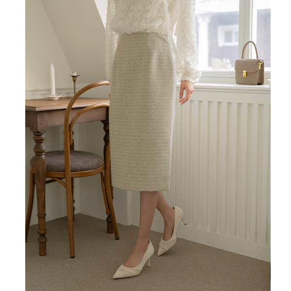 르미엘 珍珠 混合 粗呢 H字型 Set-up 裙子