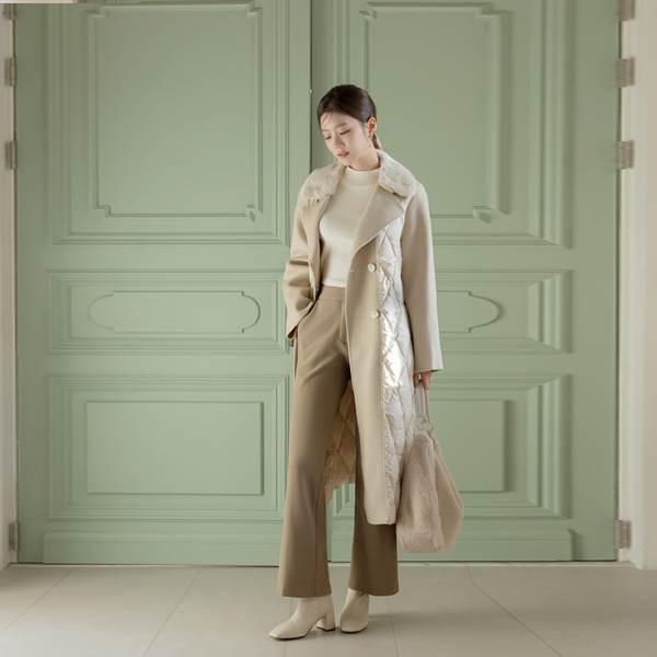 貂皮毛 领子 鹅毛 配色 羽绒服 羊毛 束带 长款 大衣