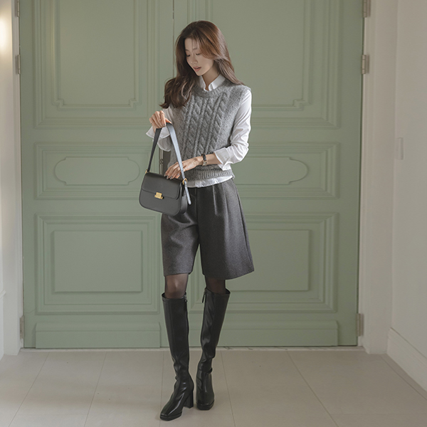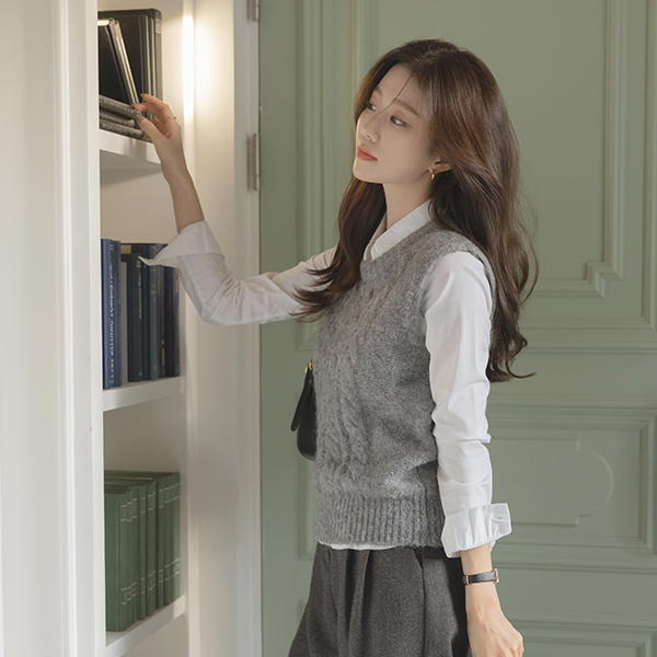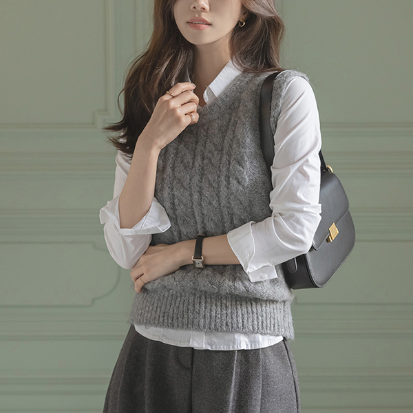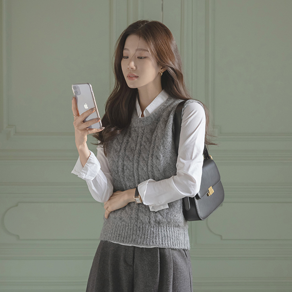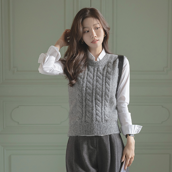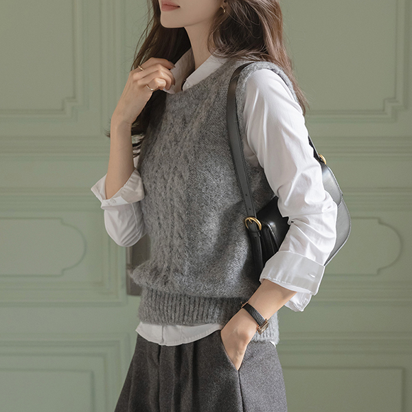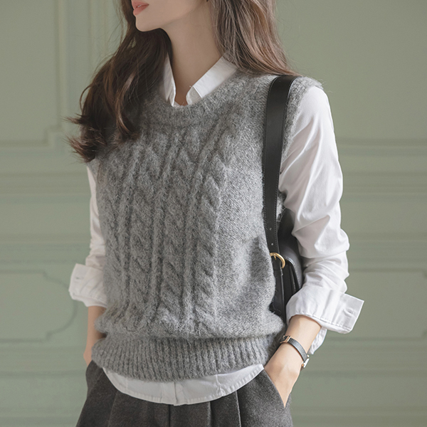 柔软的 圆领 羊毛 缆绳 马甲