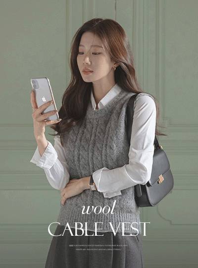 柔软的 圆领 羊毛 缆绳 马甲