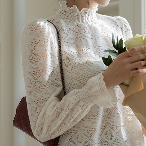 麻糬 弹力 荷叶边领 羊毛 蕾丝 罩衫