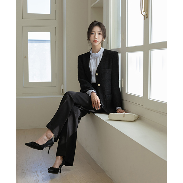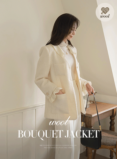 双重 荷叶边领 羊毛 短上衣 结子花式 夹克