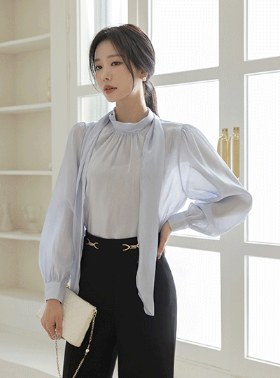 闪亮 有光泽 褶皱 领带 罩衫