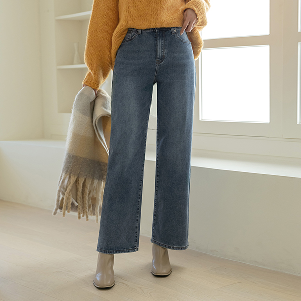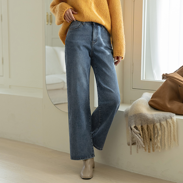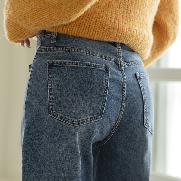 弹力 宽绰 松紧带 拉绒 牛仔色 裤子