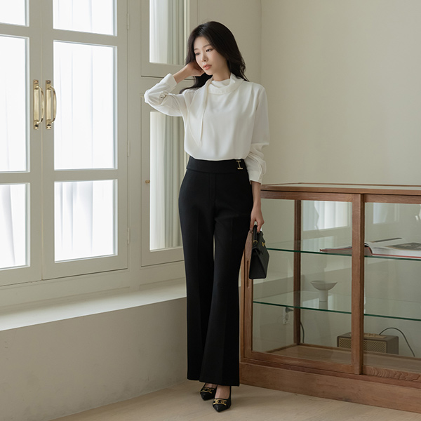 优雅 褶裥 围巾领 罩衫