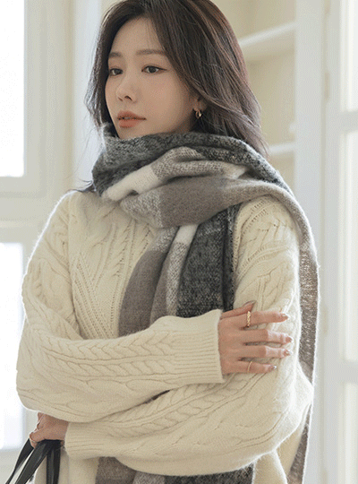 蓬松。 混合 格子 图案 围巾