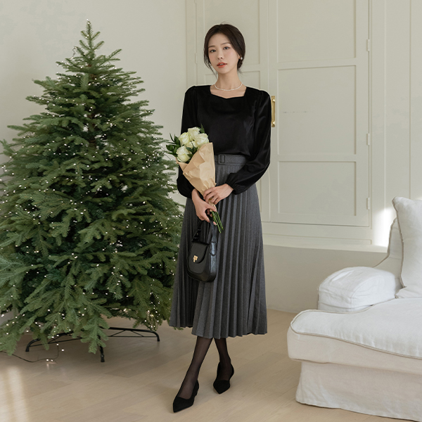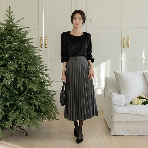 멜버른 腰带 装饰 羊毛 褶边 裙子