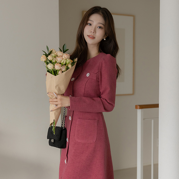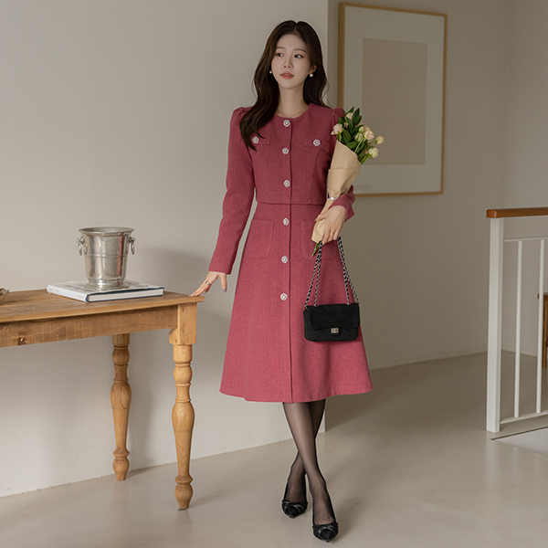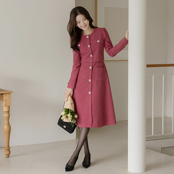 露西 两件套 风格 羊毛 粗呢 连衣裙