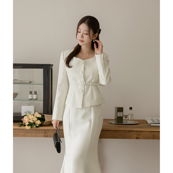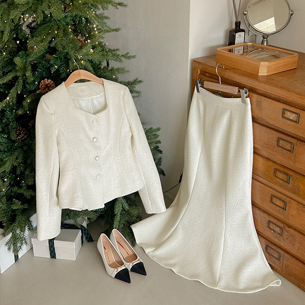 闪亮 羊毛 粗呢 荷叶边 Set-up 夹克