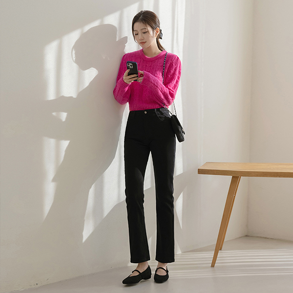 弹力 拉绒 内衬 날씬핏 棉 裤子