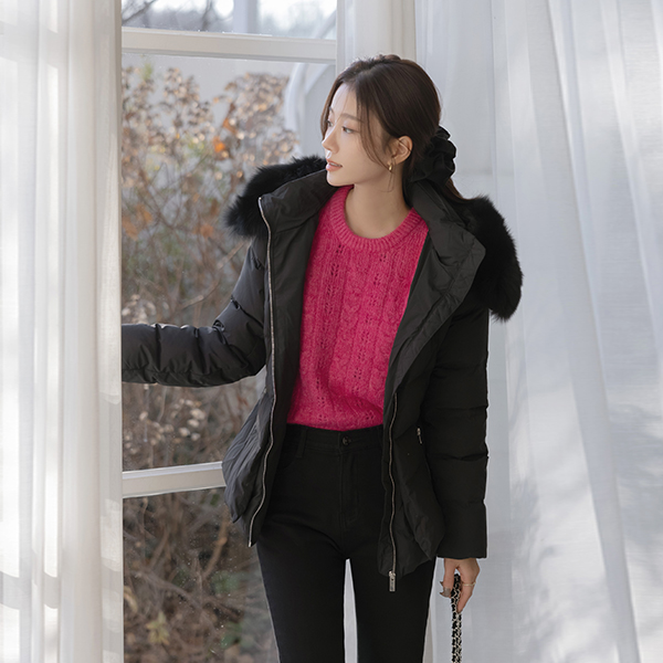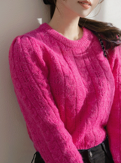캐롤 稍厚的 麻花 羊毛 泡泡袖 针织衫