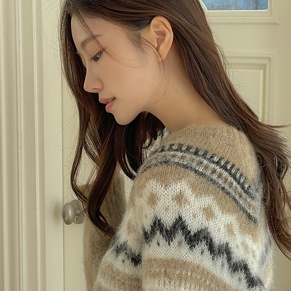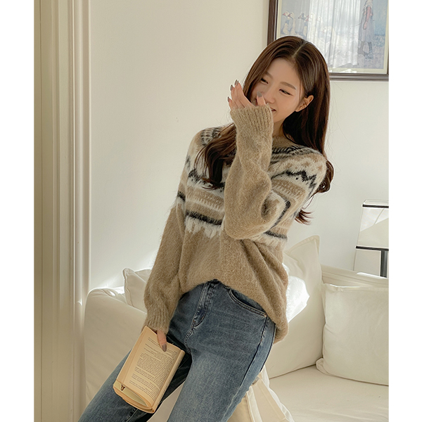 复古 北欧 图案 羊毛 稍厚的 针织衫