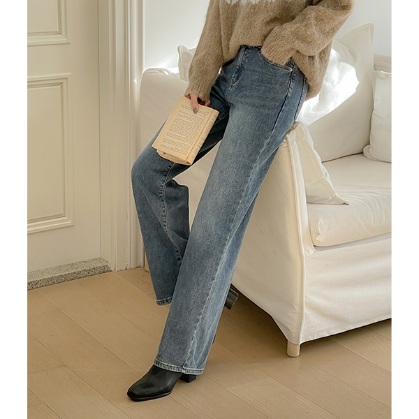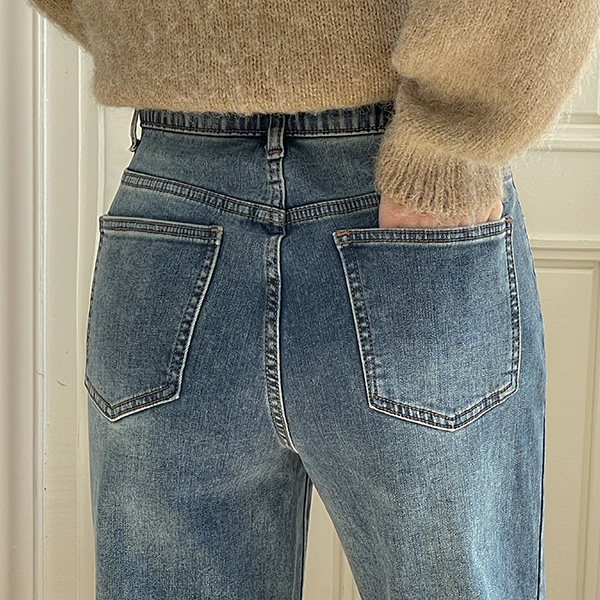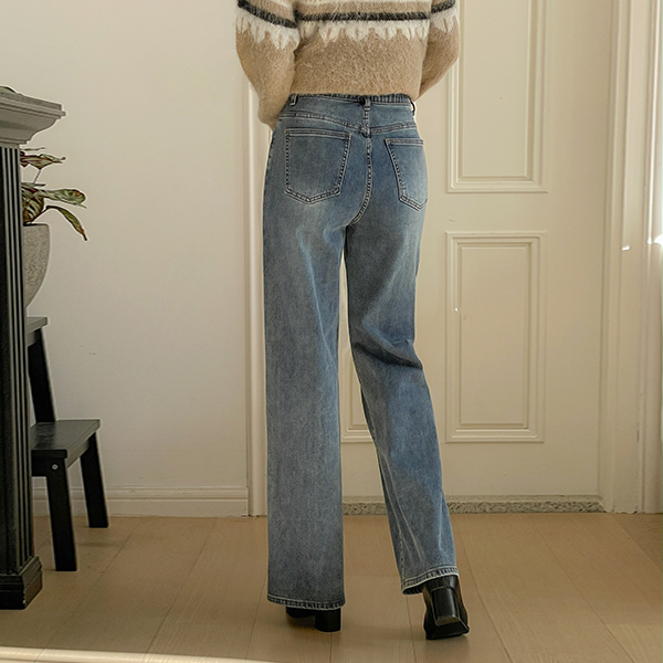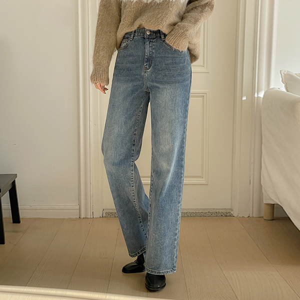 日常 拉绒 内衬 宽松 牛仔色 裤子