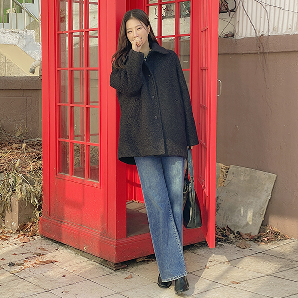 日常 拉绒 内衬 宽松 牛仔色 裤子