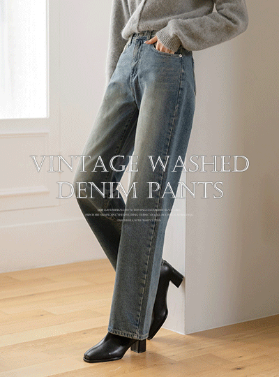 复古 水洗 拉绒 内衬 여유핏 牛仔色 裤子