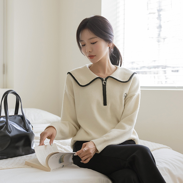 키츠 苗条 领子 短上衣 拉链卫衣 针织衫