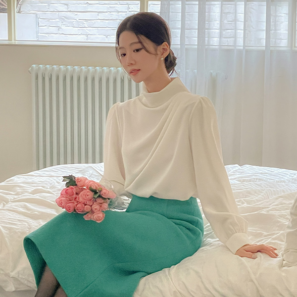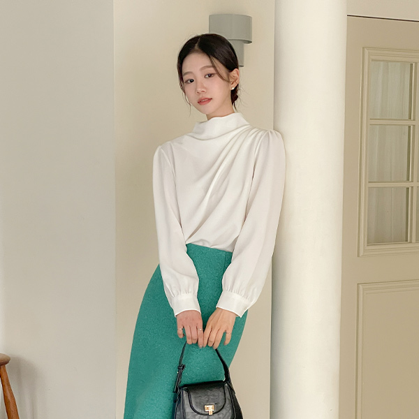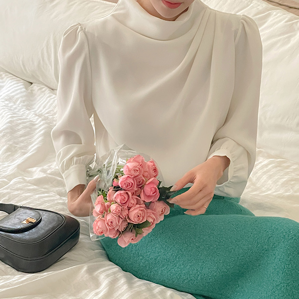 优雅 高领 褶皱领 罩衫