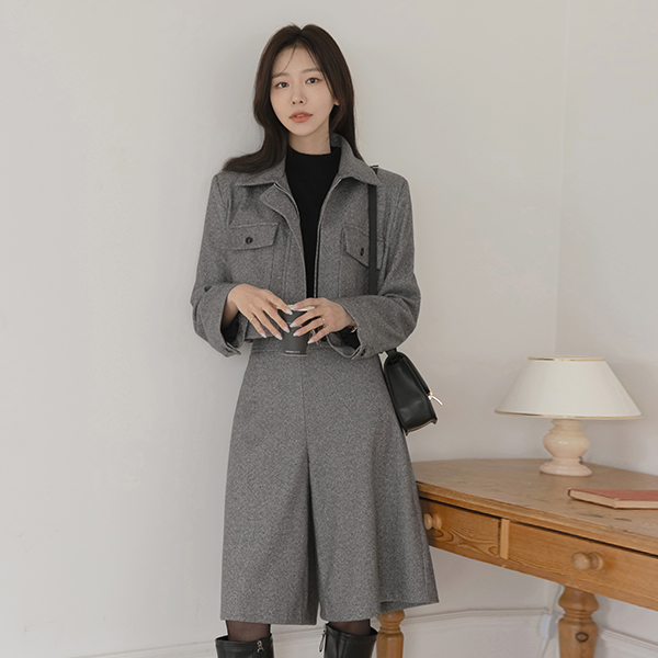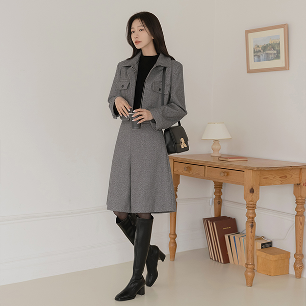 원스 人字呢 羊毛 7分裤 Set-up 夹克