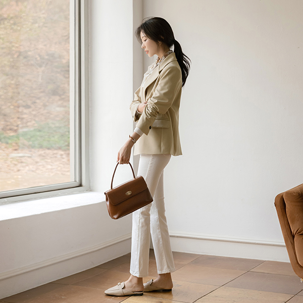 双 粗线 光面皮鞋 点缀 戒指