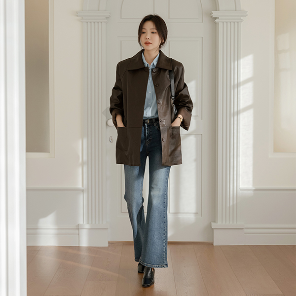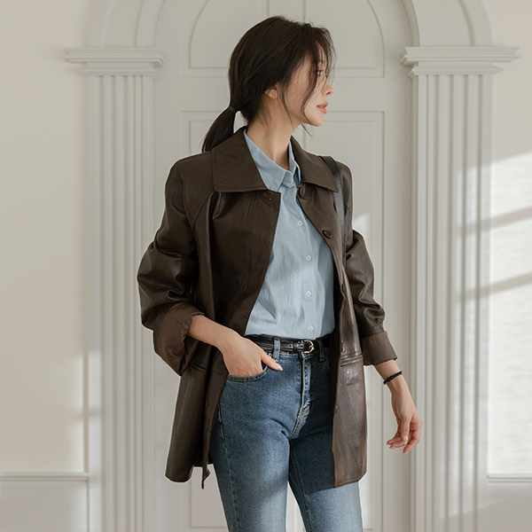 모먼트 여유핏 领子 人造皮夹 夹克