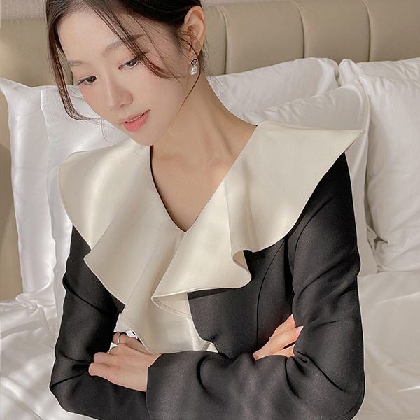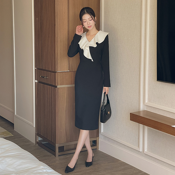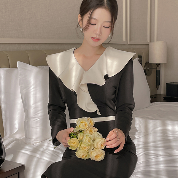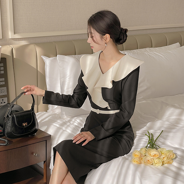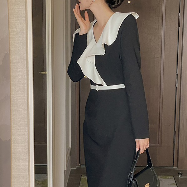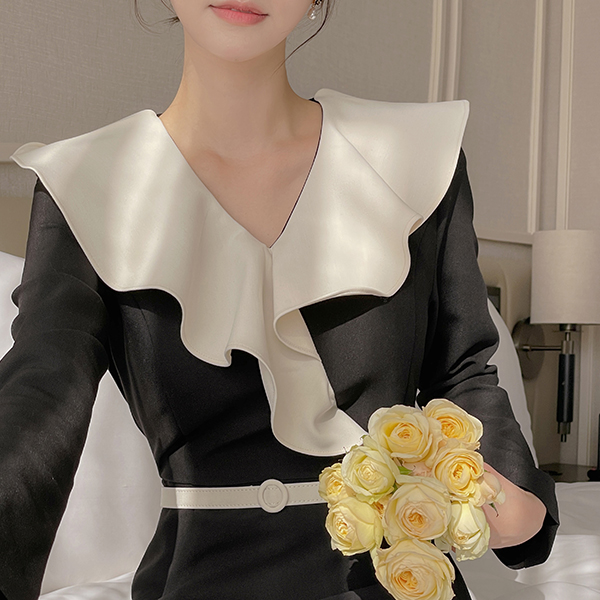 ODE 宽松 荷叶边领 腰带 (套装) 连衣裙