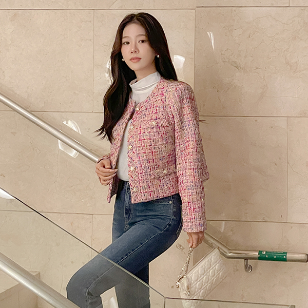 颜色 混合 特级 粗呢 夹克