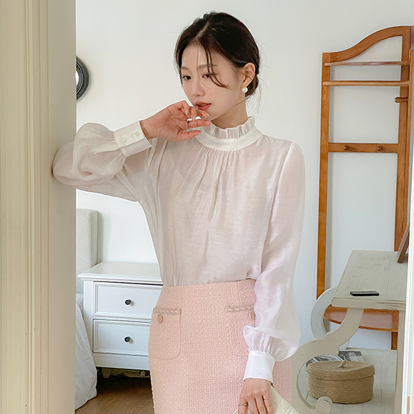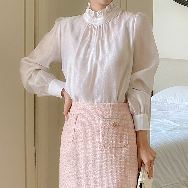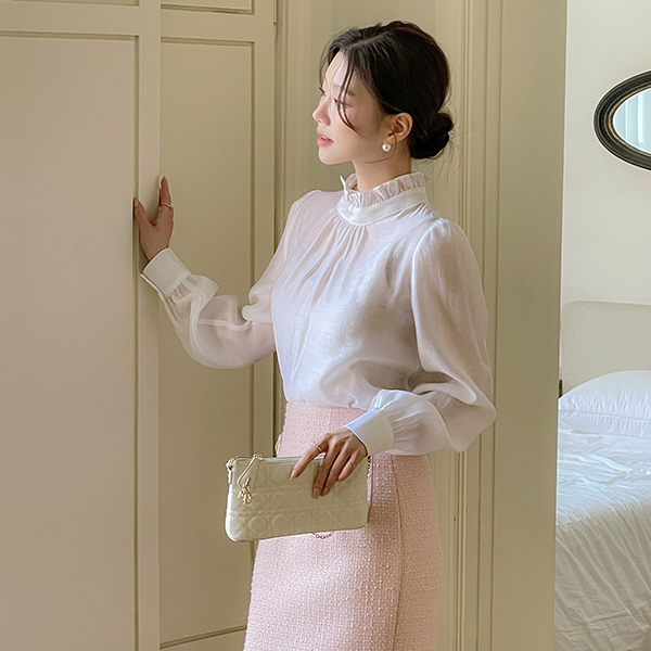 雏菊 丝滑 荷叶边领 罩衫
