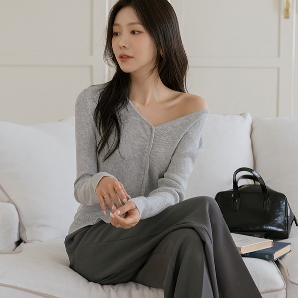 斯利姆 漂亮的版型 V字领 开叉 针织衫