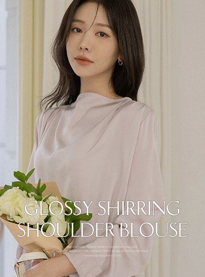 有光泽 褶皱 肩膀 罩衫(+皮条/束带)