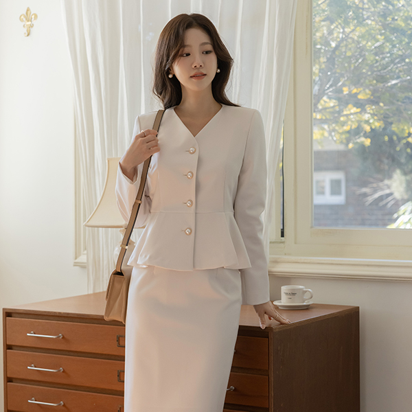 玫瑰色 타이끈 荷叶边 Set-up 夹克