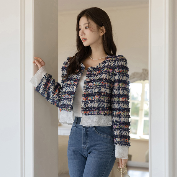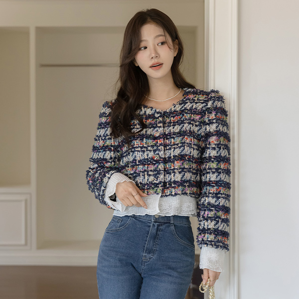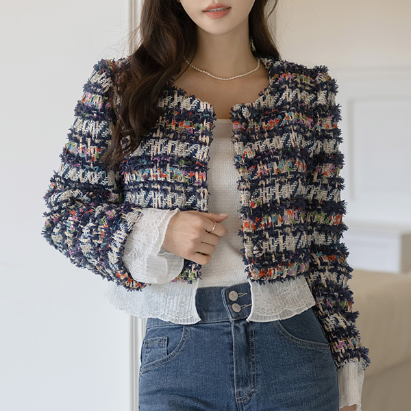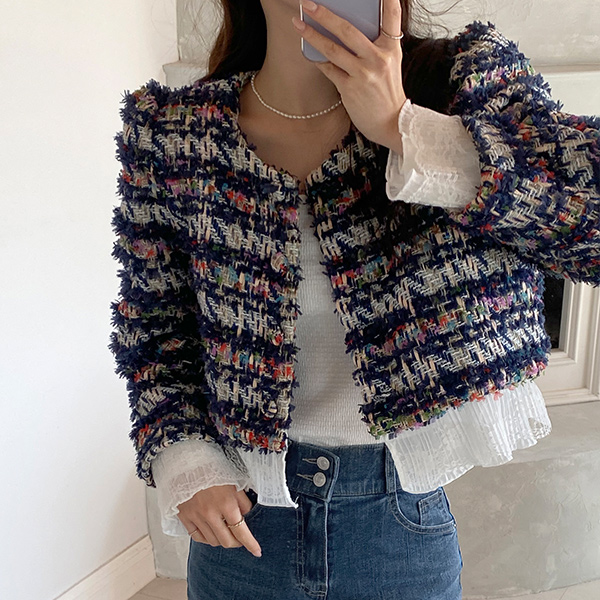 荷叶 分层 粗呢 夹克