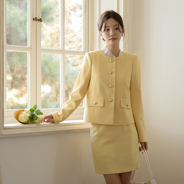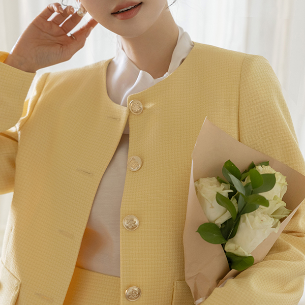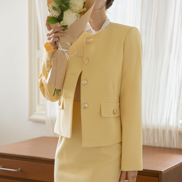 小方 圆领 粗呢 Set-up 夹克