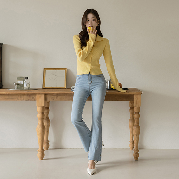 翻领 촘촘 条绒 开衫