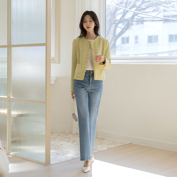 特级 링사 休闲风格 喇叭 牛仔色 裤子