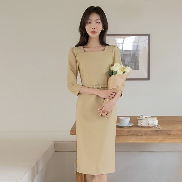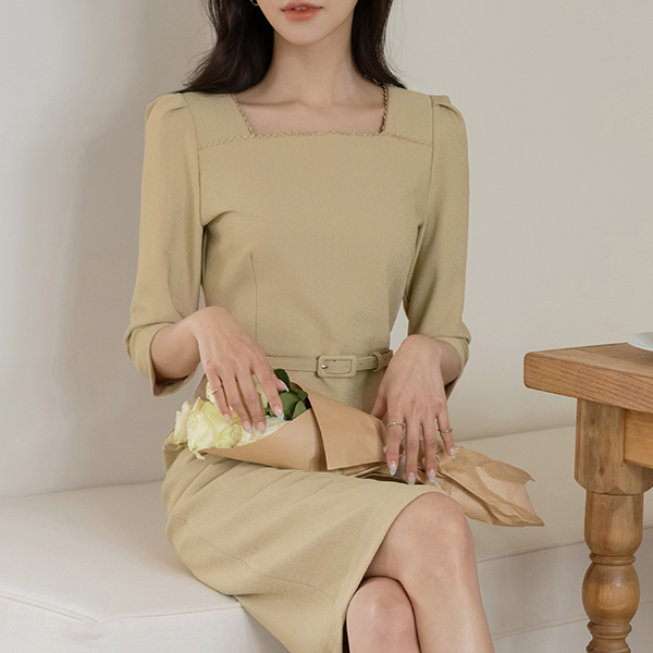 안젤라 方领 H字型 连衣裙(+腰带)