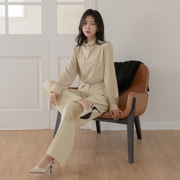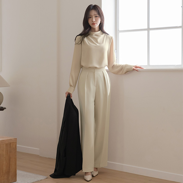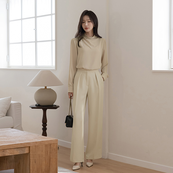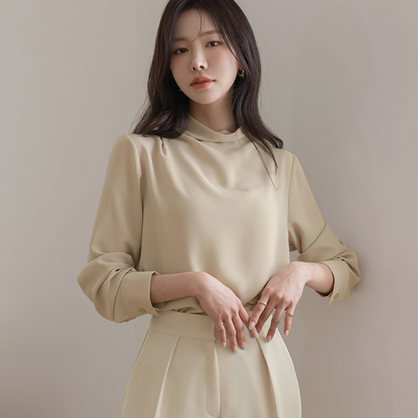 [O:neul] Creamy 半高领 优雅 帽檐袖 罩衫(长袖)