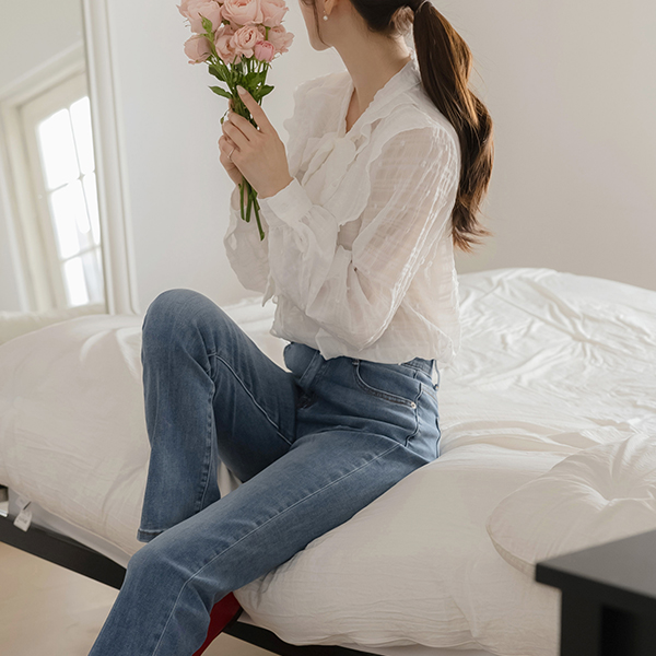 可爱 爆米花 褶裥 领带 罩衫