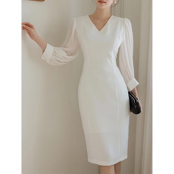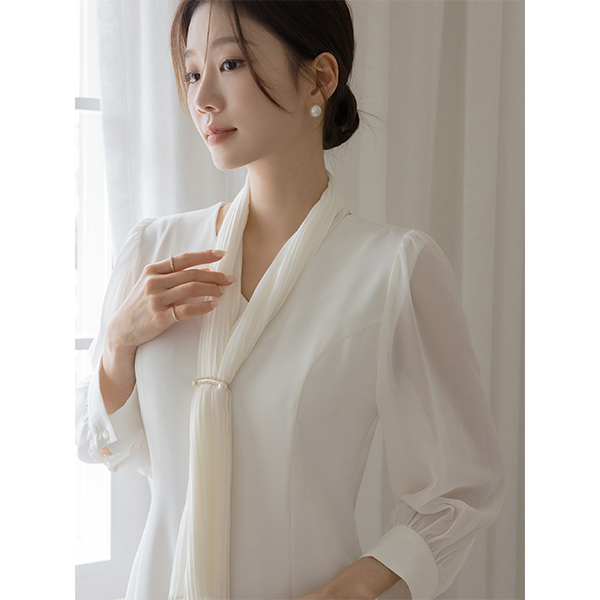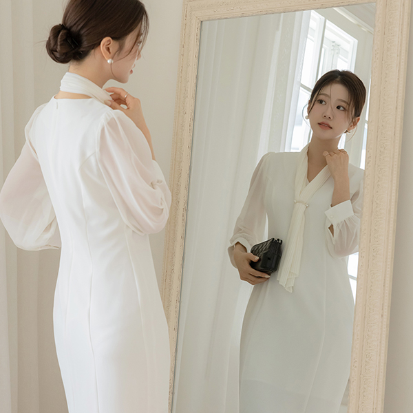 샬롯 雪纺 袖 斯利姆 连衣裙(+围巾)
