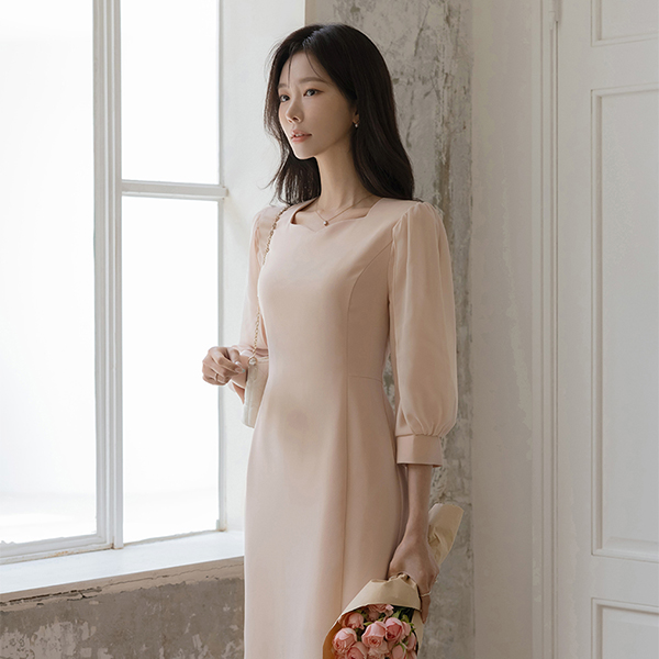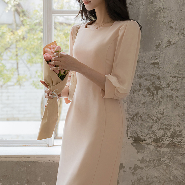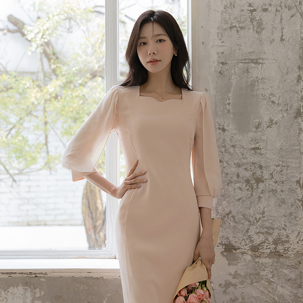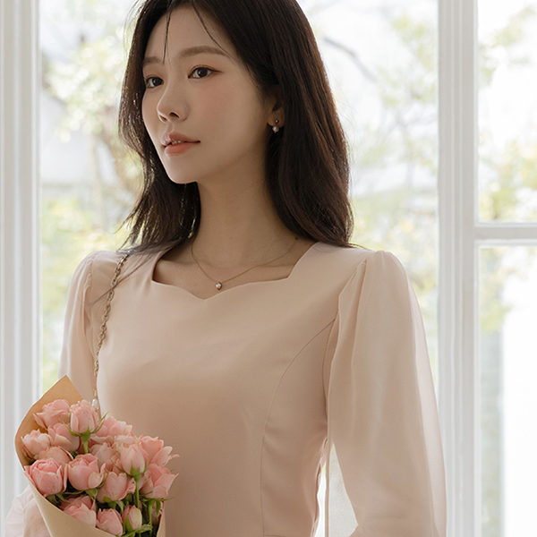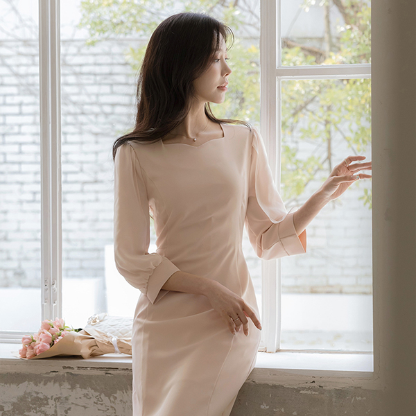 浪漫 二重 雪纺 袖 修身 连衣裙