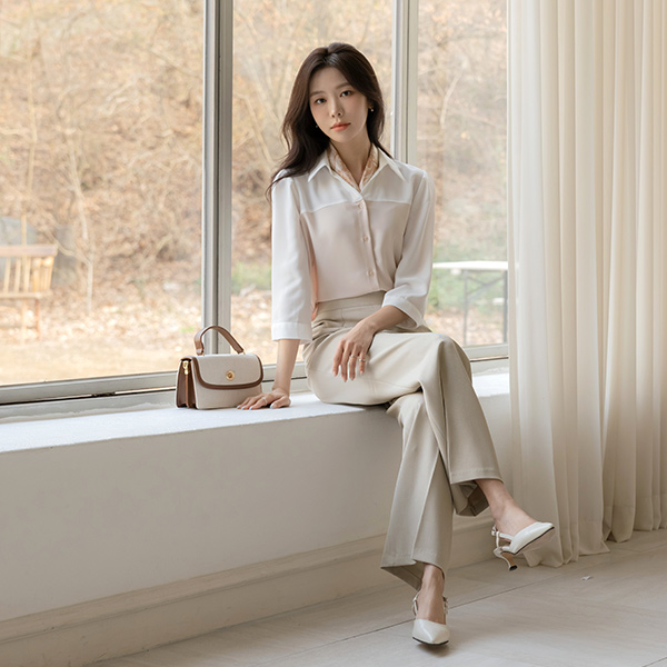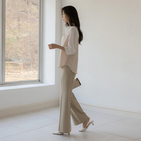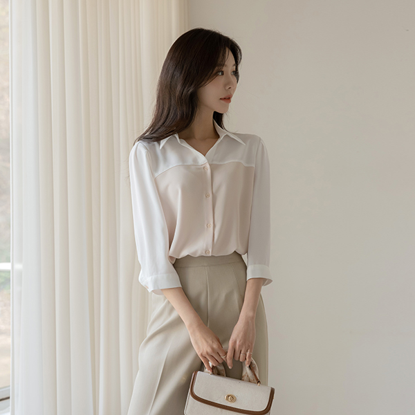 니즈 配色 分层 7分袖 罩衫