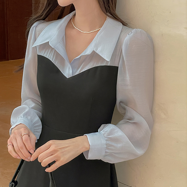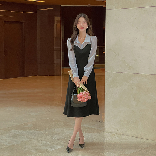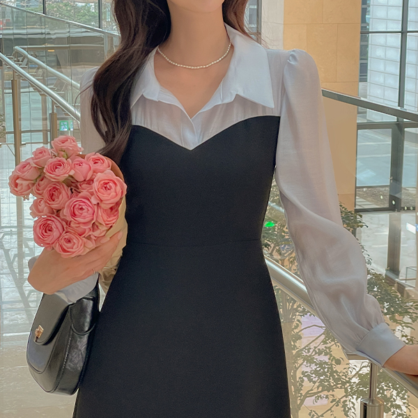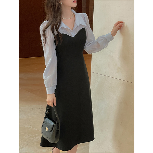 프레첼 分层 配色 连衣裙