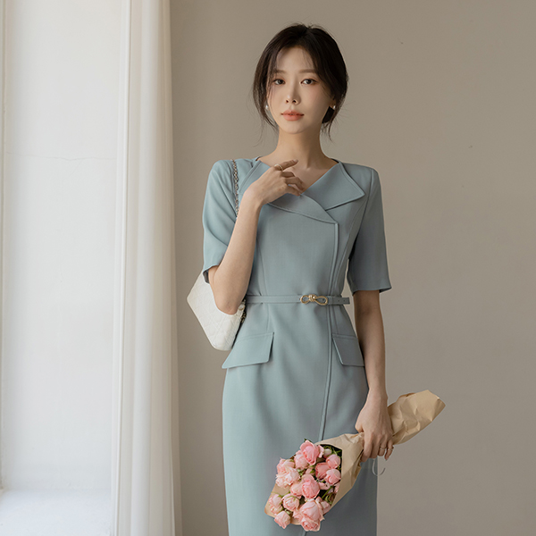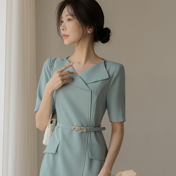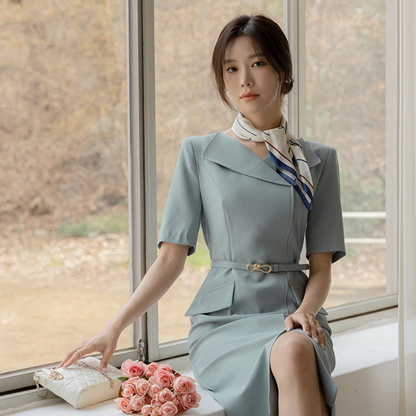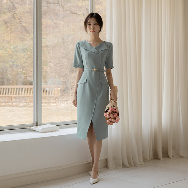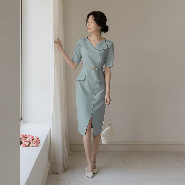 쉬즈 古典 开衩 H字型 连衣裙(+腰带)