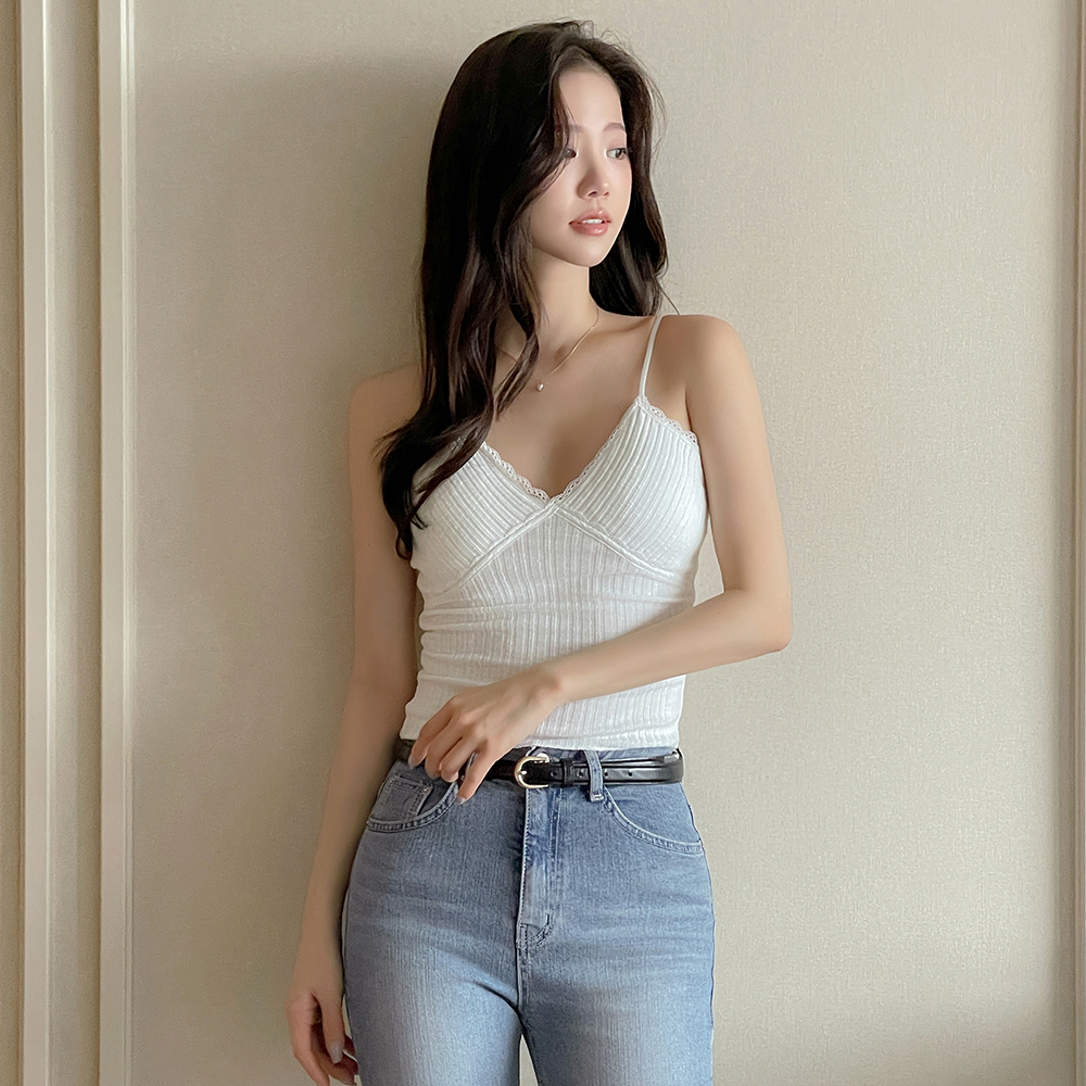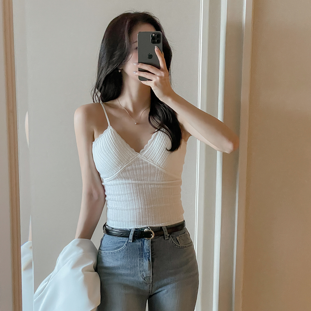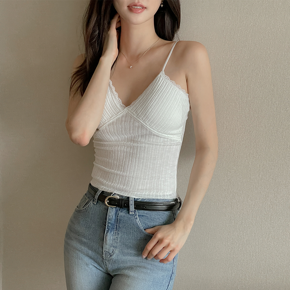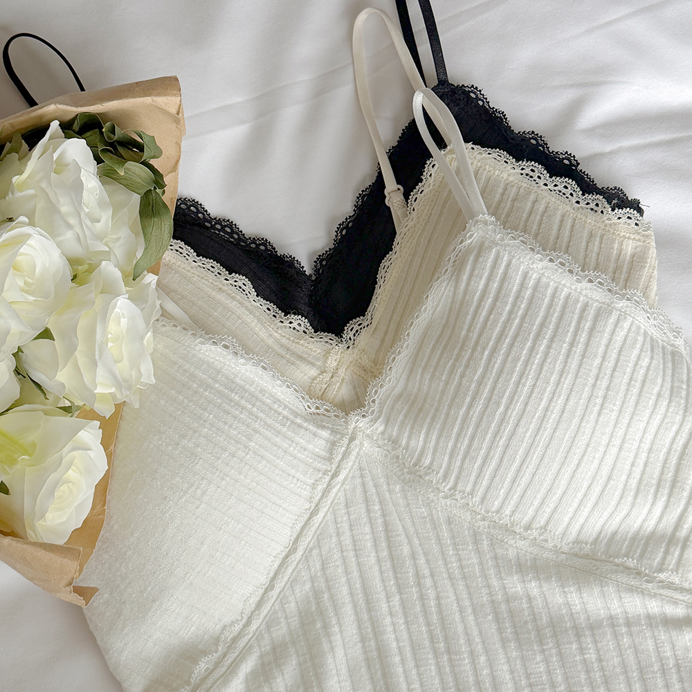 女性化的 条绒 蕾丝 帽檐 내장 背心
