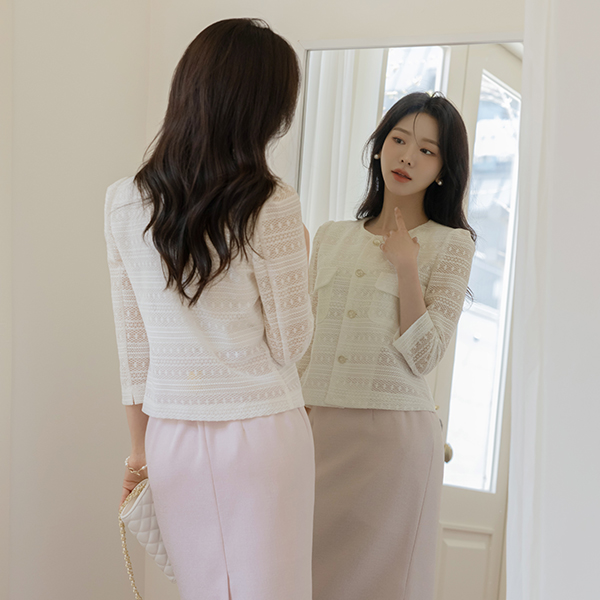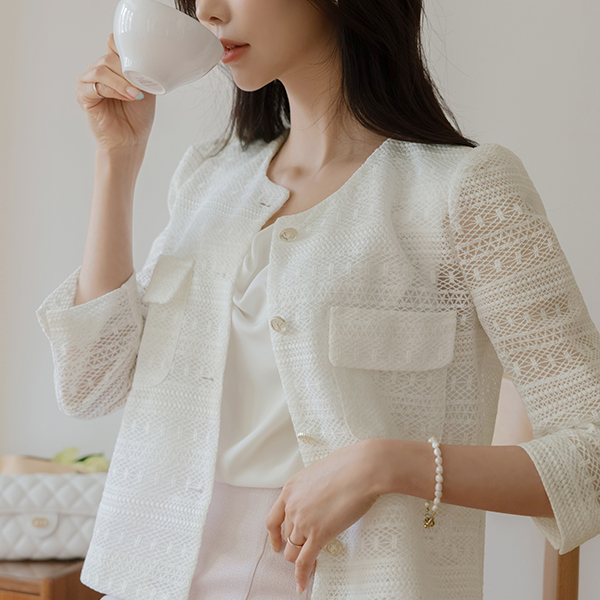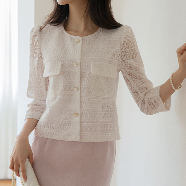 女性化的 蕾丝 印花 夹克