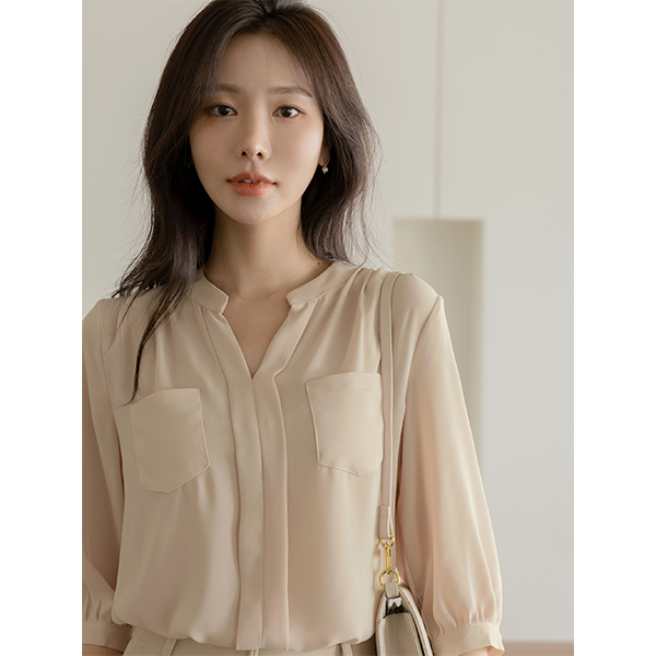 Juicy 两侧口袋 7分袖 罩衫
